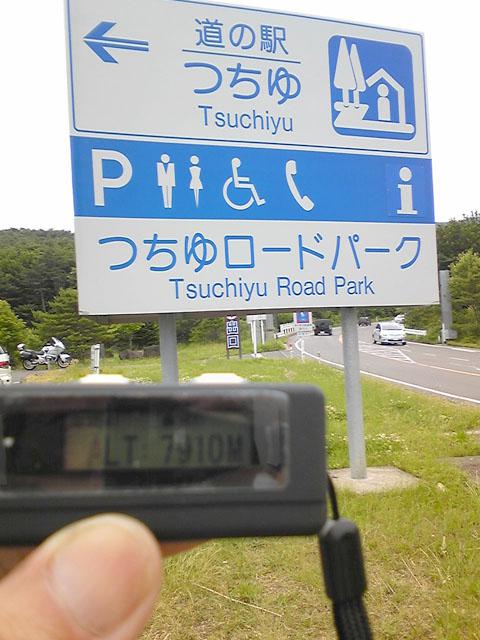 峠区間のトンネル間で1000m超の表示が出たのを見て、そのまま降り、道の駅「つちゆ」で小休憩。