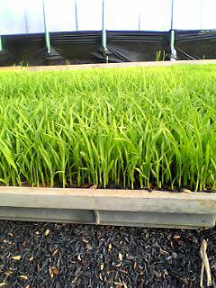 ちらっとハウスをのぞいてきました。苗の長さは5cm位かな?こんな感じでした。