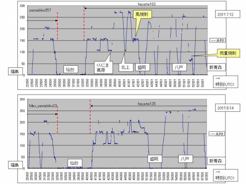 ▼GPS鉄>震災後の東北新幹線>特別ダイヤ>福島-新青森間下り