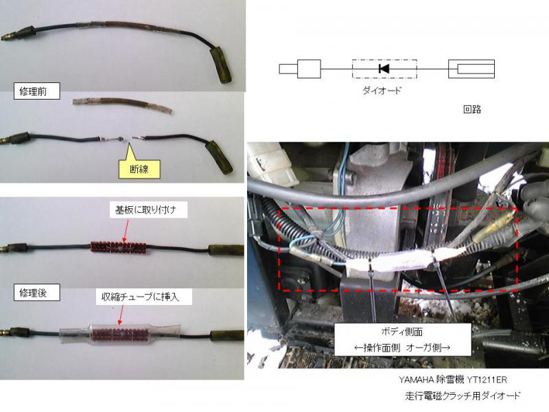 本除雪機は、走行を制御を電磁クラッチにより行われており、電磁クラッチに電流が