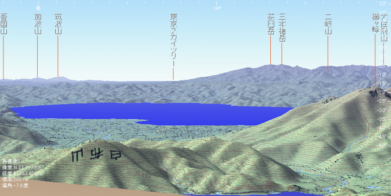 「西吾妻山頂から見たイメージ図」の再現を試みた結果。
