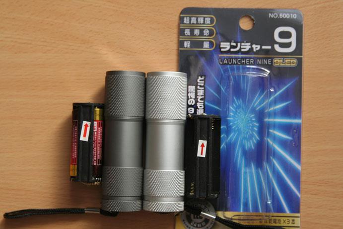 ▼100均LEDライト>ローソン100_9LED>「ランチャー9」との比較