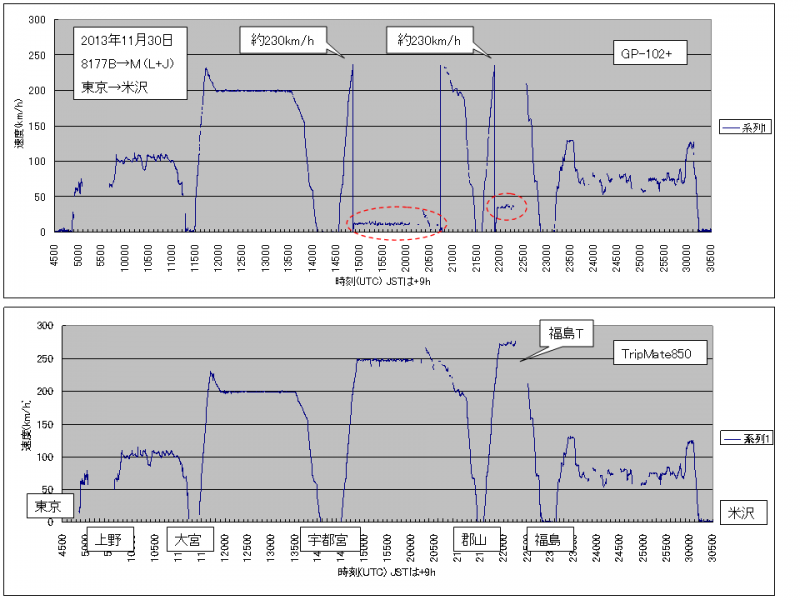 ▼GPSロガーGP-102+>新幹線で試してみた