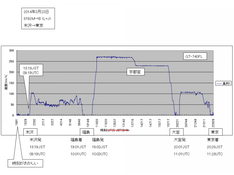 ▼GPSロガーGT-740FL>新幹線で試してみた