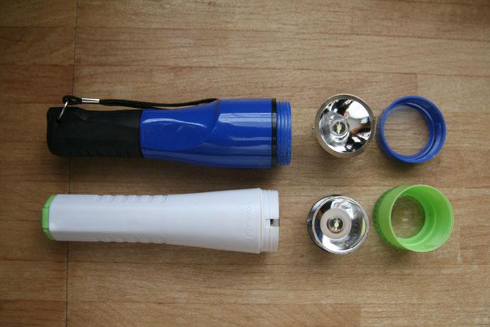 写真上:ダイソーのライト,写真下:シルク/ワッツ扱いのライト