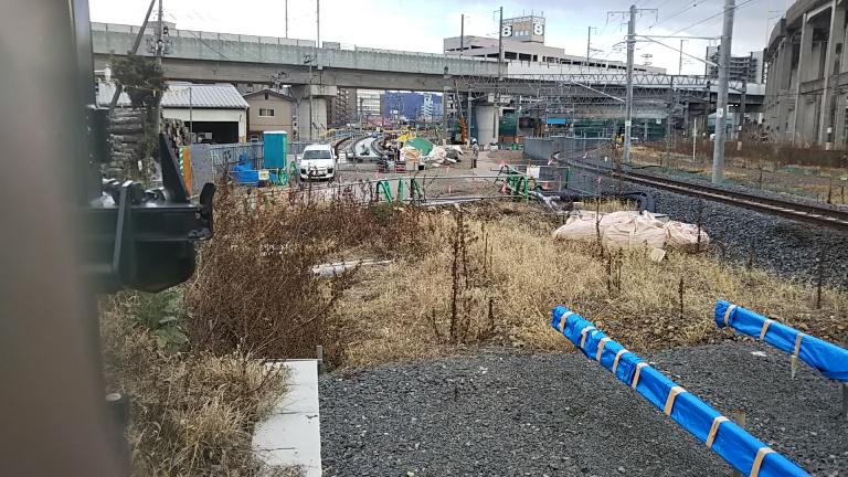 写真上部の高架が東北新幹線本線,右側の高架が現アプローチ線,