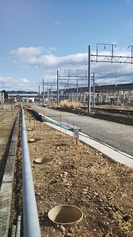 ▼山形新幹線上りアプローチ線>2/4工事状況>三河踏切〜畑踏切間1