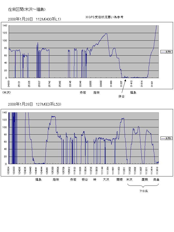 このグラフは在来区間(米沢〜福島間)です。