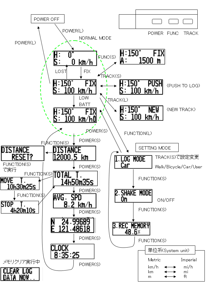 WPL-1000の表示モードと操作の関係を整理してみました。
