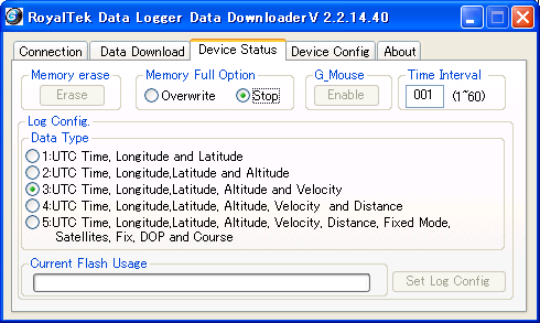 強化された項目は、距離情報の追加と、ログ時の衛星情報,進行方向を追加してログが可能になった事。
