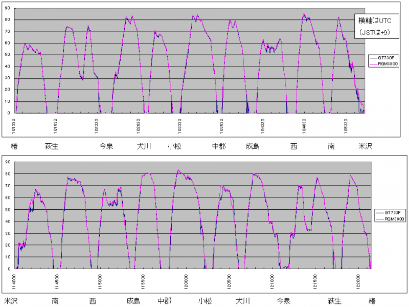 ▼GPSロガー>GT-730F(L)>速度データの比較