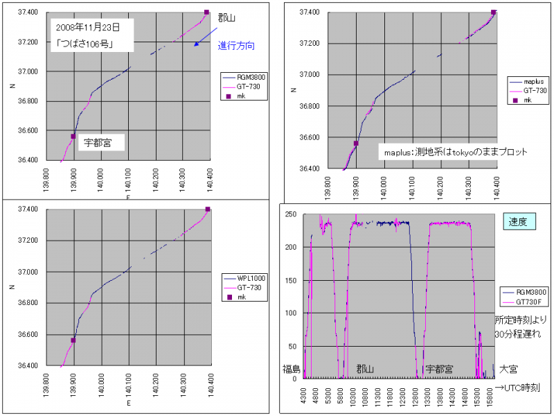 グラフは郡山〜宇都宮間の軌跡と、福島〜大宮間の速度カーブです。