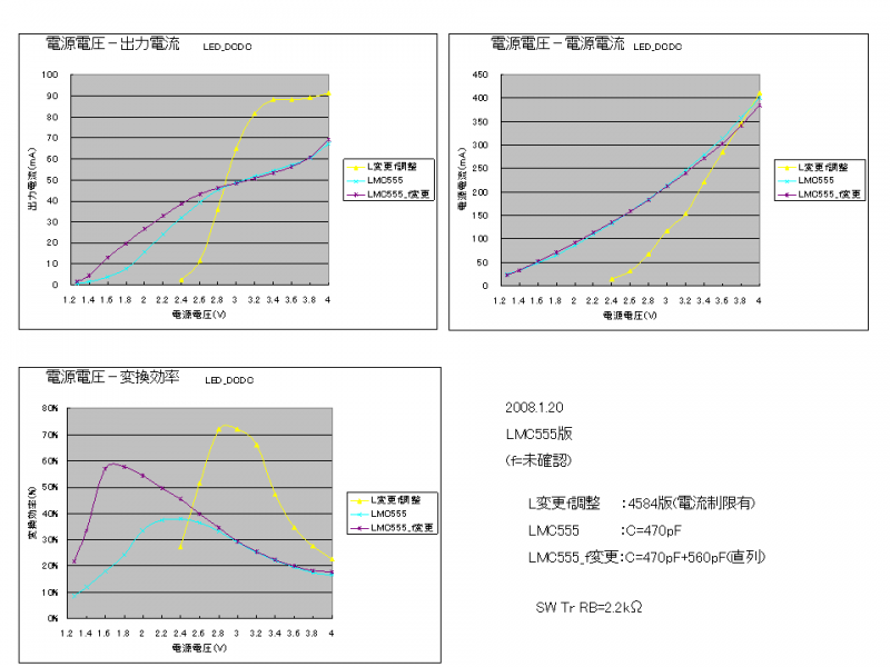 ▼電子工作>LED点灯用DC-DC>LMC555版試作回路と特性