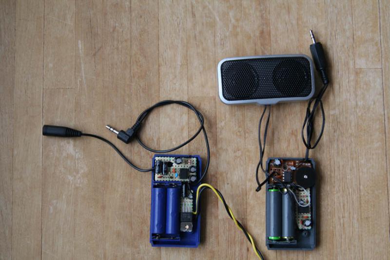 ▼100均>「ボリュームアンプ」>ステレオ化 方法1仮配線