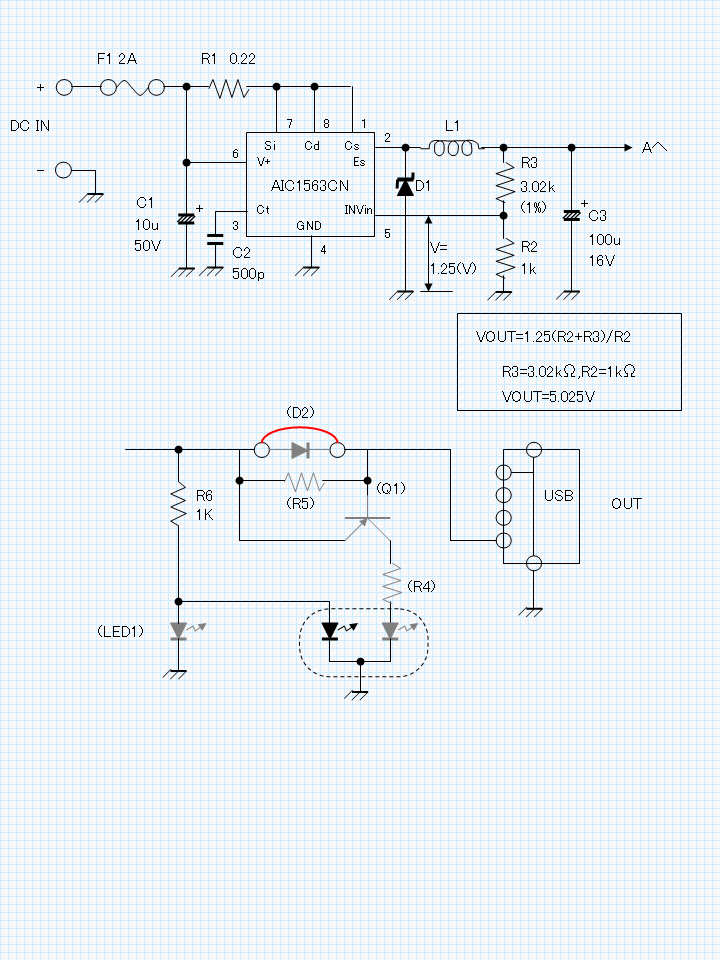 (AICのデータシートには、いろいろ部品が追加された回路が掲載されていましたが・・・)