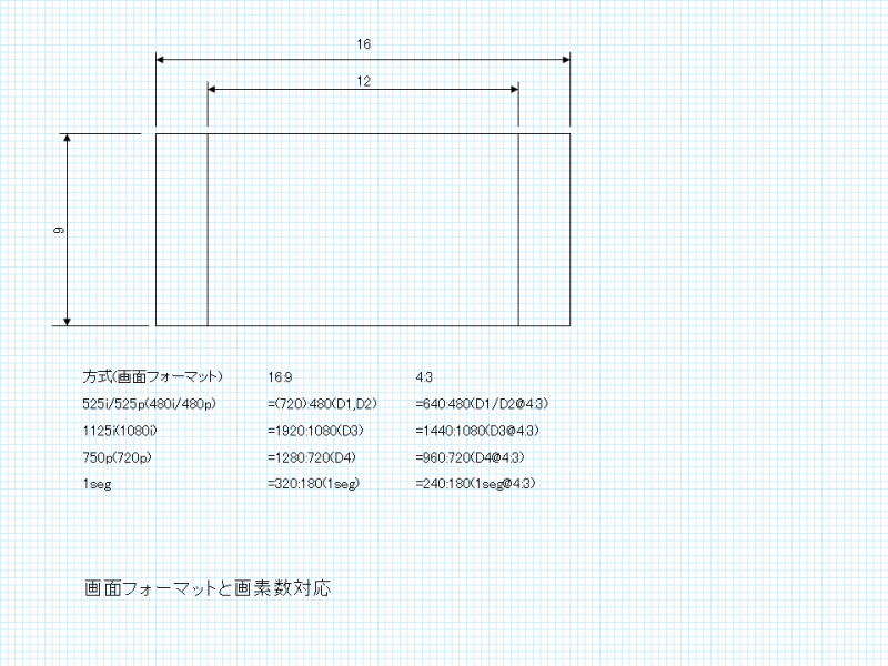 画面フォーマットと画素数の対応をイメージにしてみた。