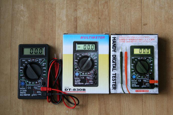 場合によっては1000円以下で売られているDT-830Bという中国製のデジタルテスタがあります。