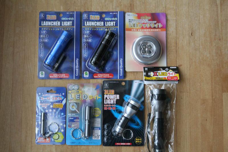 100円均一ショップに行くと、白色LEDが使用されたライトがいろいろ販売されています。