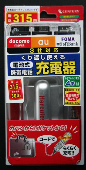 (もっとも本器は315円商品。単に電池ボックスとして流用するのならCANDOの携帯充電器のほうが105円で安いのですが・・・電池とケーブルが付いており、電話機毎のコネクタ3種が付属しているので、315円でもコストパフォーマンスはそれほど悪くないとは思う・・・)
