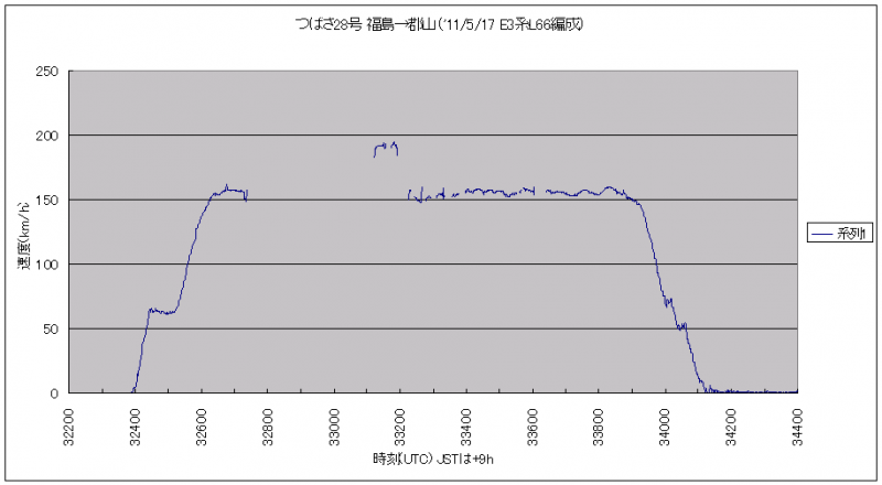 グラフが途切れている32620〜33100(UTC)あたりが福島トンネル通過時。