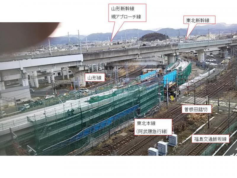 福島駅において、山形新幹線用の上りアプローチ線新設工事が進められています。