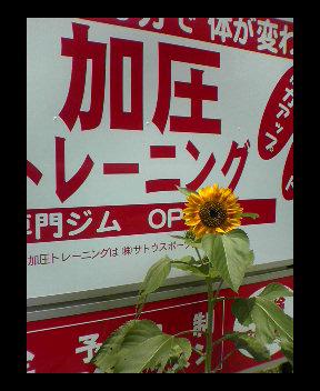 看板前にひまわりが大きくなって、目を摘むのも忍びないと思っていたら、こんなに大きくなって花も咲きました。