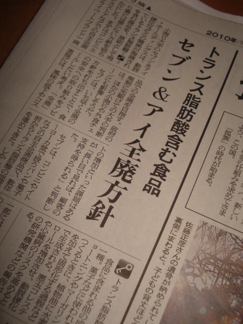 トランス脂肪酸に関しては以前も書いたことがありますが、今朝の新聞を見てやっと社会が動き出してくれたと嬉しくなりました。