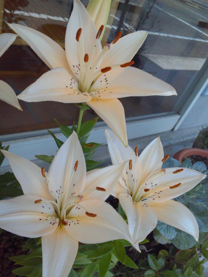こんな暑い中でもお店の前のユリがきれいに咲いています。