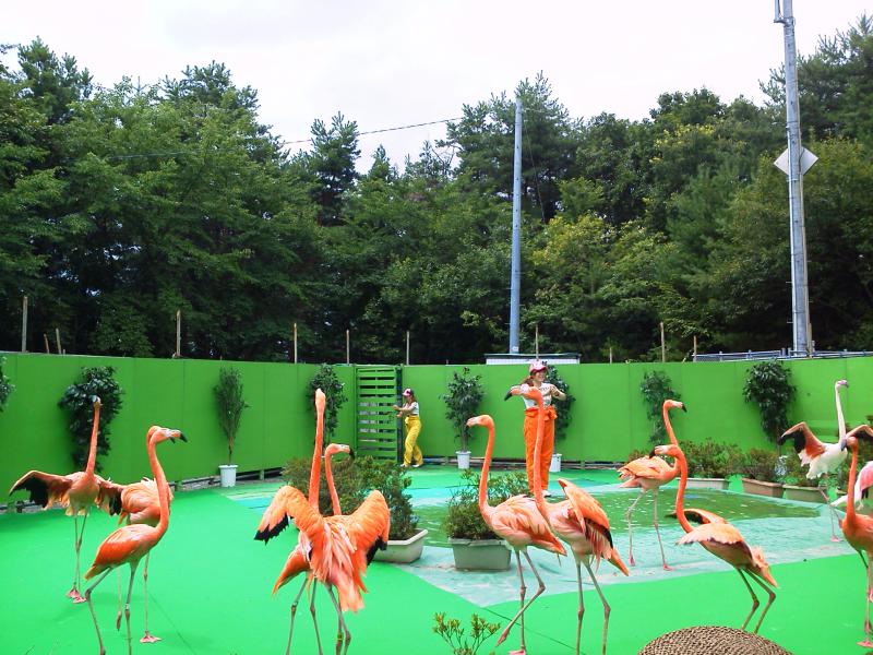 色がきれいなフラミンゴのショーや