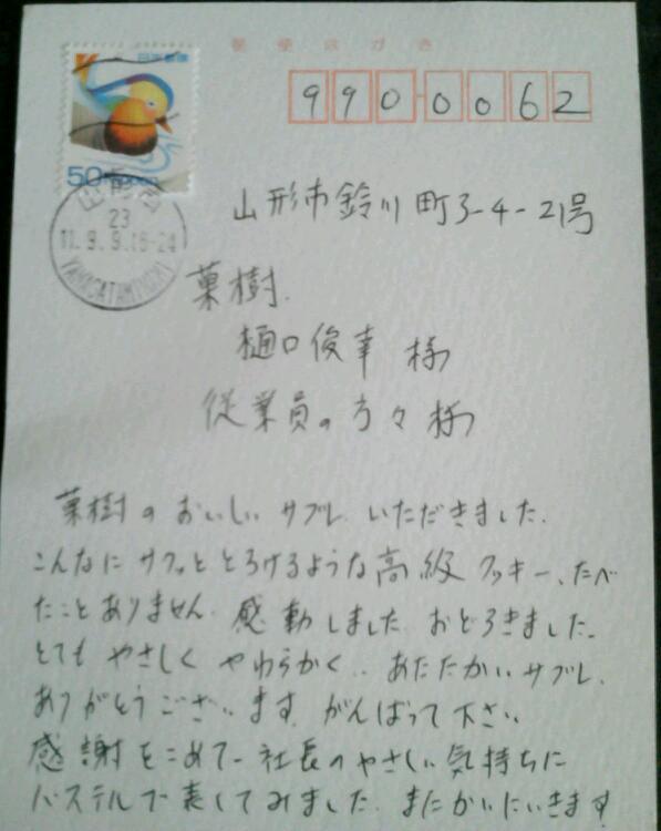 お客様からうれしいハガキをちょうだいしました(*^_^*)
