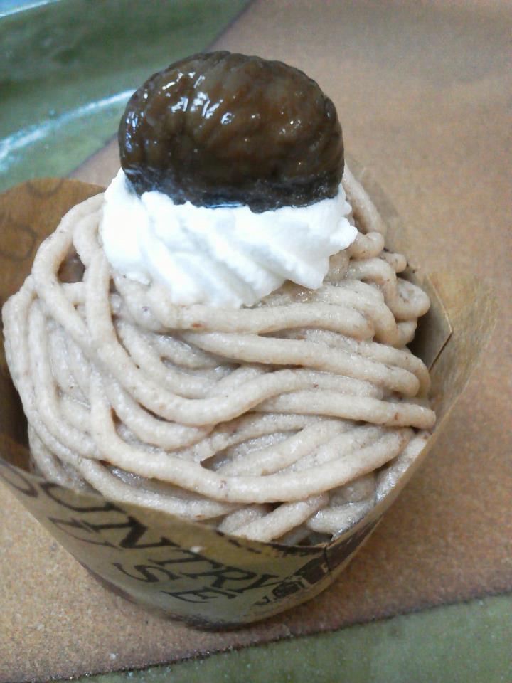 渋皮栗甘露煮、ジェノワーズ(スポンジ)が加わって