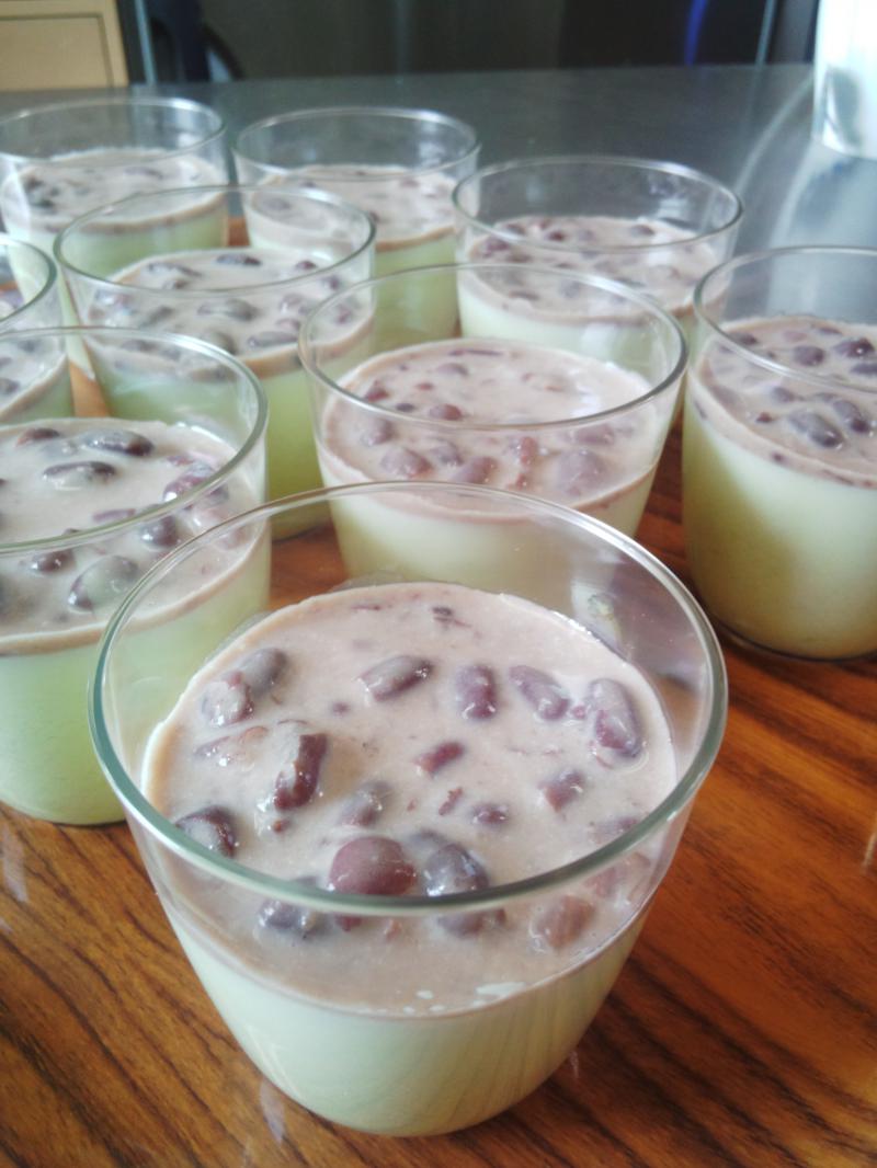 この前までは上に白ワインのゼリーを乗せていましたが、今日から あずきソースに変わりました〜♪