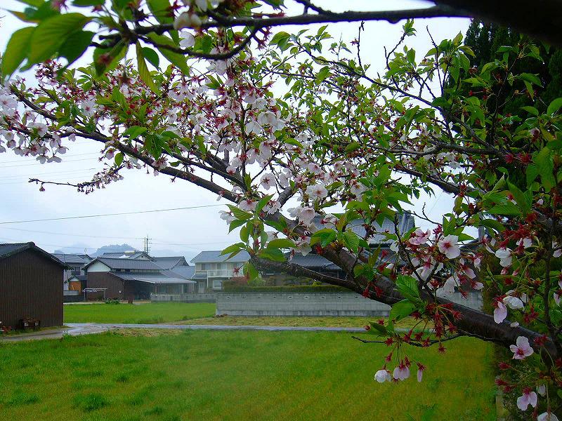 今の桜の樹の様子です。桜の枝の下の田んぼは、6月初めに田植えします。