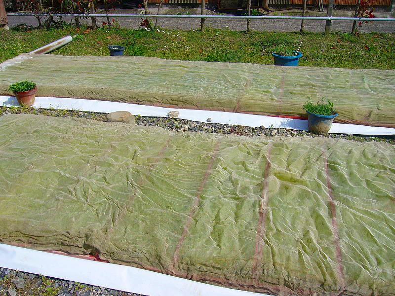 息子が納屋の横の広場にビニールを敷いて並べました。