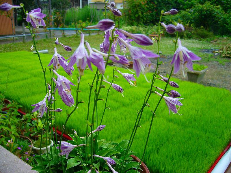今、咲き始めているのは、大きな葉っぱで大きな花のギボシです。色も形も同じですが、乙女ギボシより10〜20倍位大きいです。