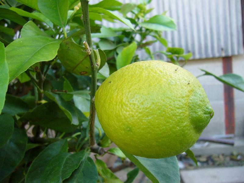 今日、カメラを持って見に行くと実が生っていたんです。 レモンって、一年に何度も実るみたいです。