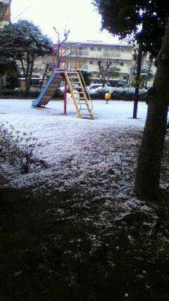 また、雪が降りました。今朝、わが家の近くから撮った公園の写真です。