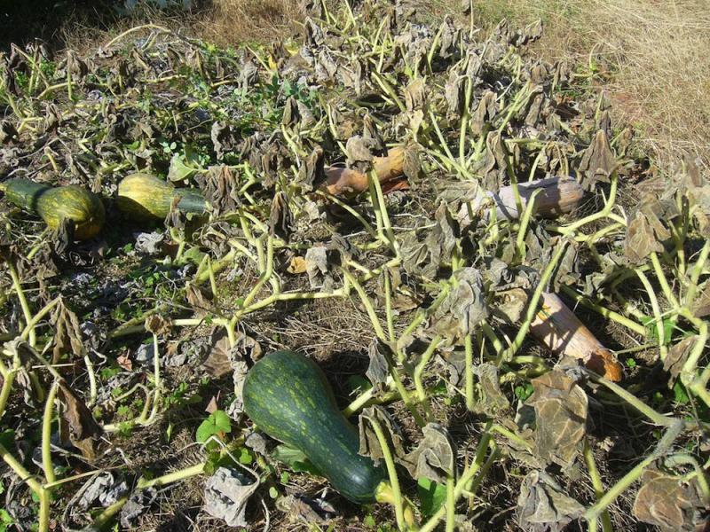〔写真〕葉っぱは枯れているけど、元気なカボチャです。