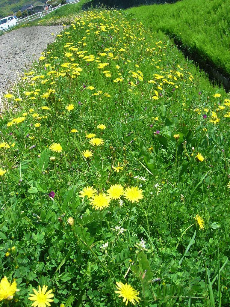 タンポポの横の畦には、一面に土筆が出ます。