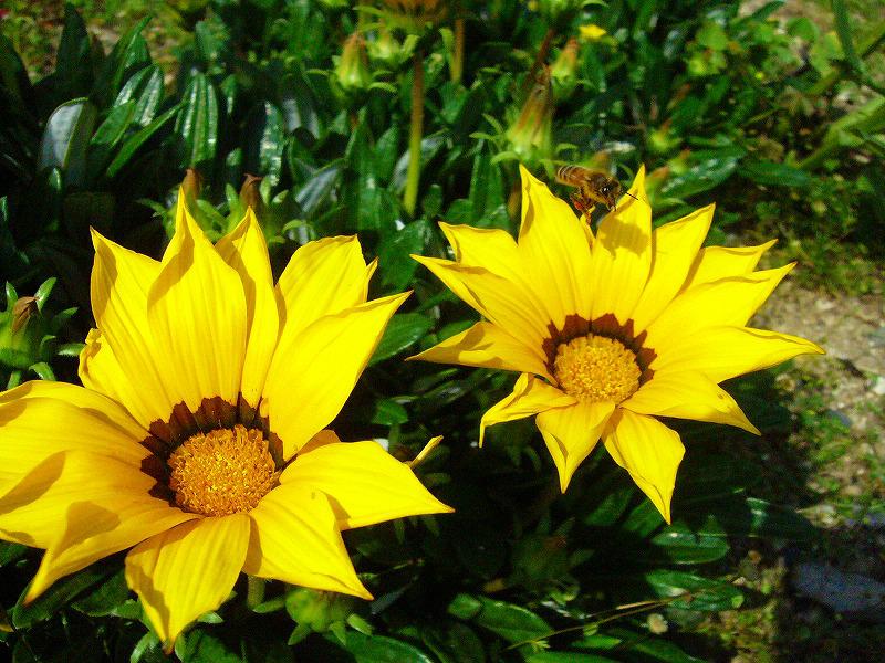 気分転換に、今日の写真(ガザニアとミツバチで〜す!)