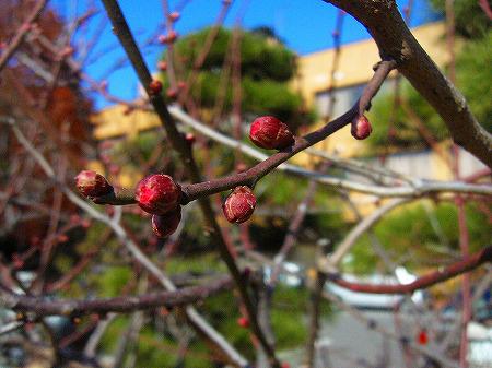 【写真】 今日、見つけた、春の魁(紅梅の蕾)で〜す。