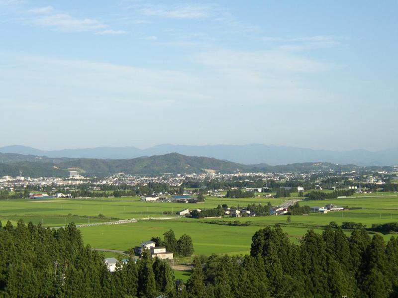 写真は長井の町の遠景。熊がすむ小高い麓から町を眺める。