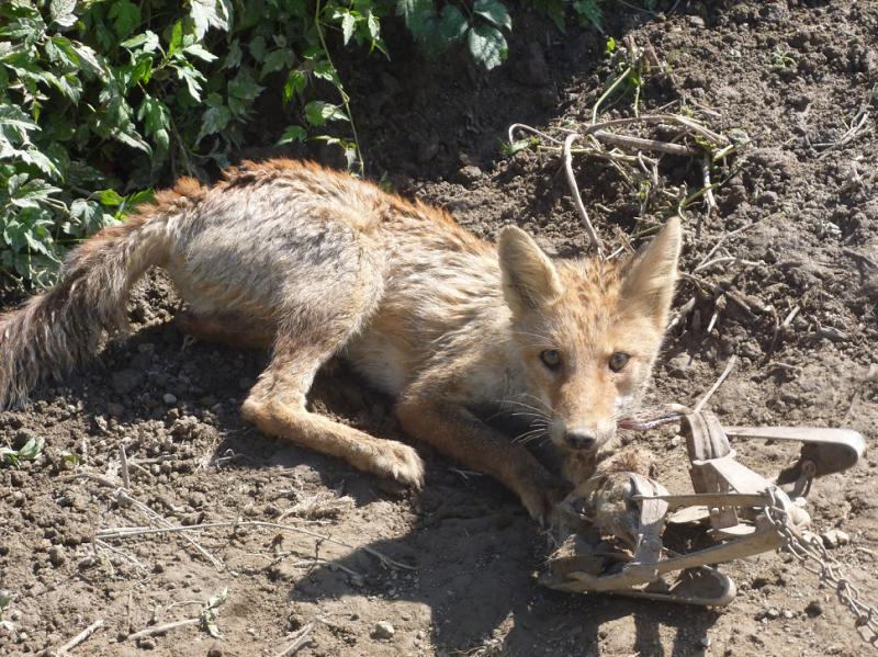 見れば足が一か所、口と舌が一か所、都合二か所がトラバサミにかかっていた。足はともかくとして、口の方はひどく傷ついていて、放してやっても助からないなと思えた。ここはしょうがない・・・な。