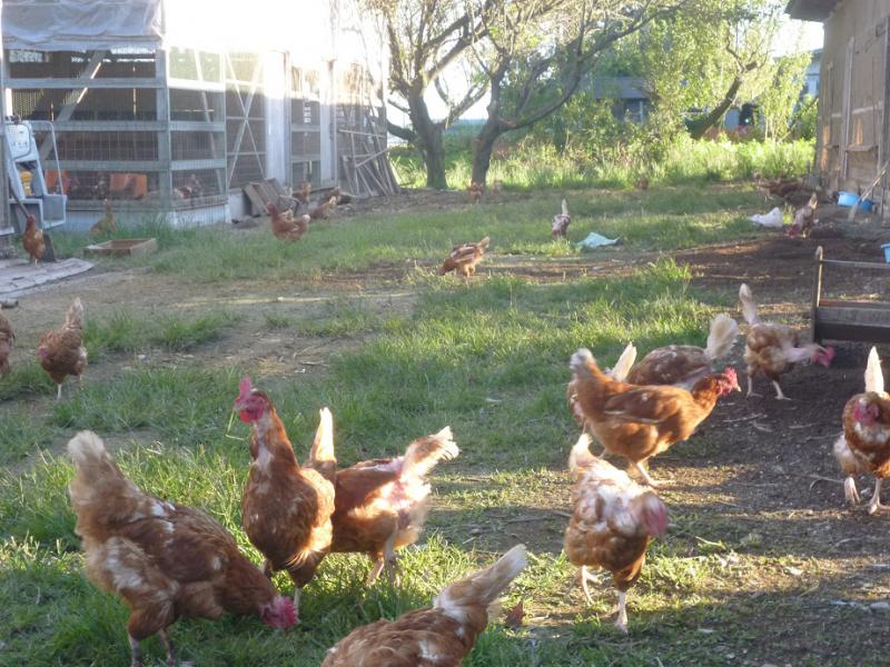 菅野農園のニワトリたちには遺伝子組み換えトウモロコシ、大豆などは一切与えていない。飼料会社に特別に要請し、そうでない穀物を手に入れている。2割ほど高いが、食する子どもたちのためにも妥協はできないな。