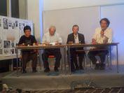 写真の右端がオレ。二人の話の進行役だった。こんな機会に立ち会えて、オレは面白かったけれど、うまく役目を果たせたか否かは定かではない。写真をみれば大きさだけが目立ち、暑苦しい。