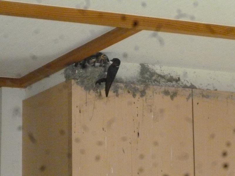 つばめが玄関の内側に巣を作っている。そのつばめ、24時間、いつでも出入りできるようにと夜中でも玄関を50cmぐらい開けていた。