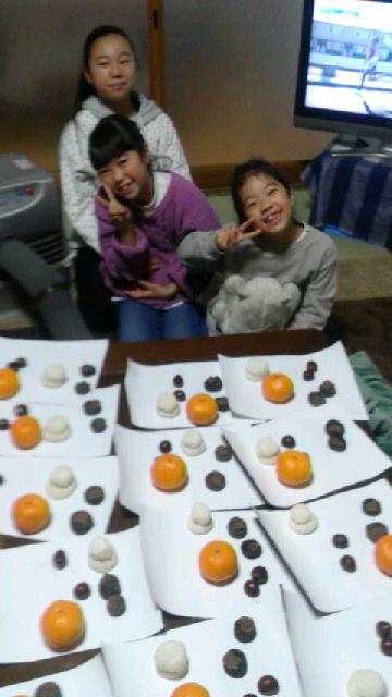 次は、台所、倉庫、農業機械舎、鶏舎、車・・など、我が家に宿る(と思われる)16カ所の八百万の神さまたちに餅、栗、干し柿、ミカンなどをお供えし、1年の無事を祈ってまわる。ここは孫たちも張り切って頑張る。