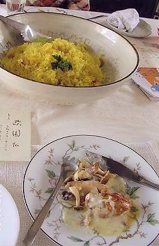 チキンと茸のクリームソース&お豆とサフランライス