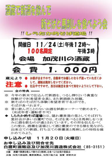 新酒&新そば&馬刺しを楽しむ会のご案内です。