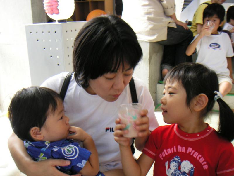 舞ちゃんは、金魚すくい・宝探し・ジュース作りにチャレンジ。
